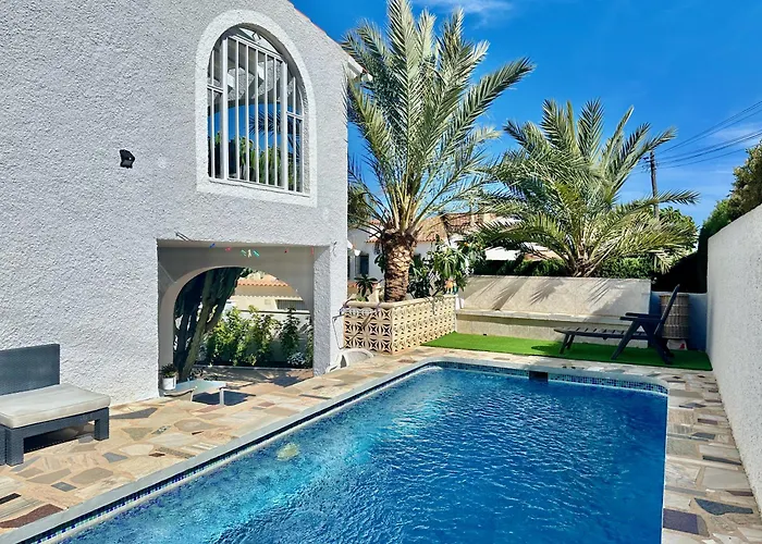 Villa Aleksandra设有日光浴,阳光露台 和室外游泳池,在Parque de La Vallesa旁边. 这间住宿提供带沙发,办公桌 和咖啡机/煮茶机的客房,可以满足您一切居住需求.